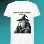 Playfully dark humor tee featuring the phrase “Let’s play hide and seek… I hide, and you seek professional help!”. Available in both bold text-only style and a wizard artwork variation. Perfect for sarcastic humor lovers.