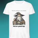 Funny “I’m Working on My Mistakes” quote T-shirt. Soft cotton, comfortable fit, and perfect for anyone who loves witty humor. Available in multiple colors and sizes.