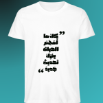 Minimal Arabic typography T-shirt with the phrase “Every time I understand life, it gets a new update.” A bold and modern design for deep thinkers with a sense of humor.