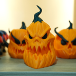 A set of three wickedly adorable pumpkin characters with mischievous expressions and sculpted details. Perfect for Halloween décor lovers and collectible fans who enjoy spooky charm with a playful twist.