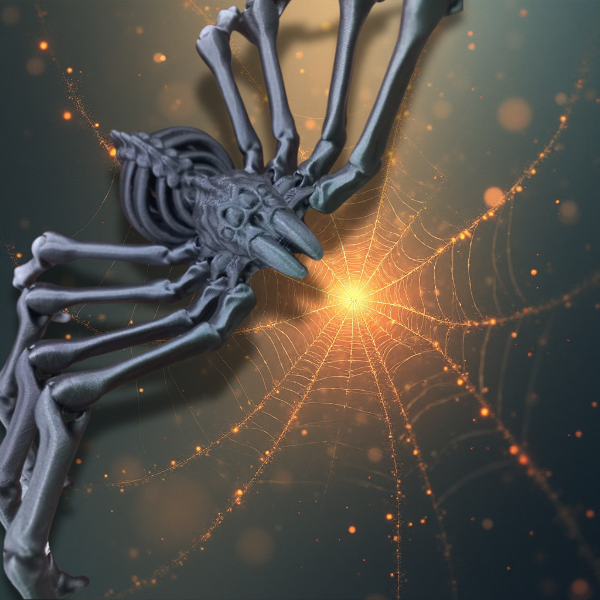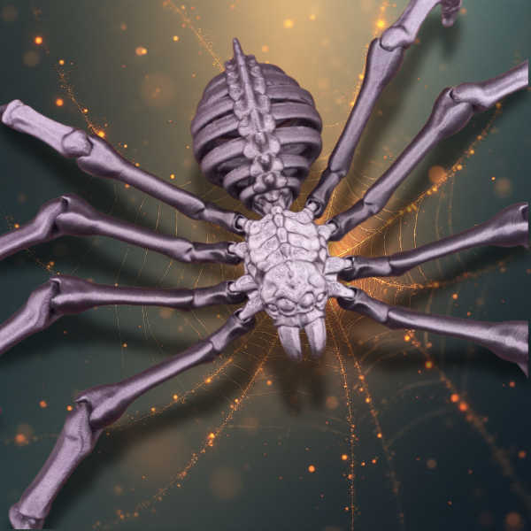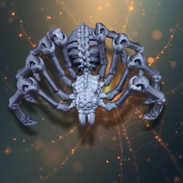 Creepy articulated skeletal spider, perfect for spooky Halloween vibes and horror décor.