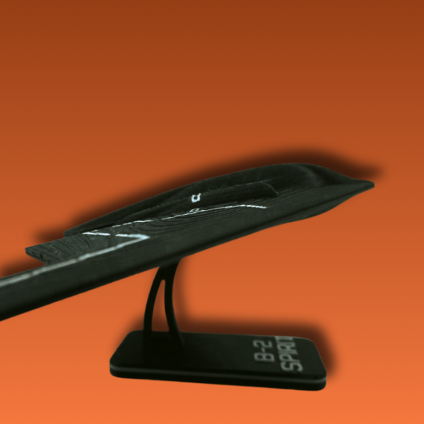 The all-black design with engraved details and wing markings captures the essence of the real stealth bomber. Its flat flying wing shape makes it instantly recognizable and a striking display piece.