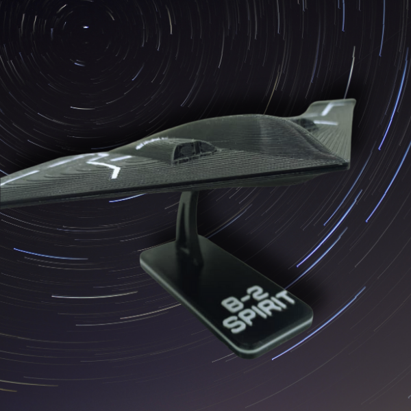 Assemble and display the legendary B-2 Spirit stealth bomber with this 3D printed kit card. A sleek and modern replica of the iconic flying wing aircraft.
