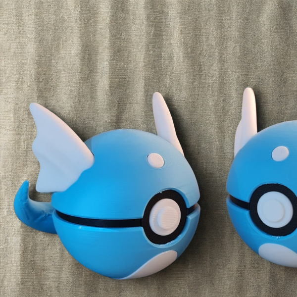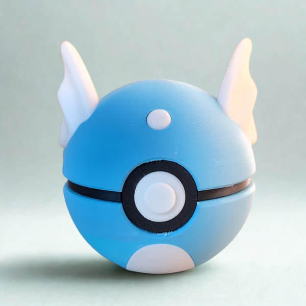 Catch the magic with this Dratini-inspired Pokéball, featuring wings and tail details. A must-have for Pokémon fans and collectors.