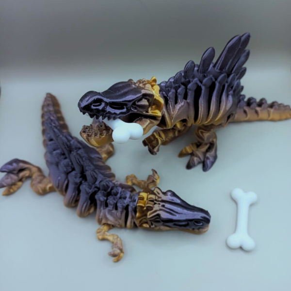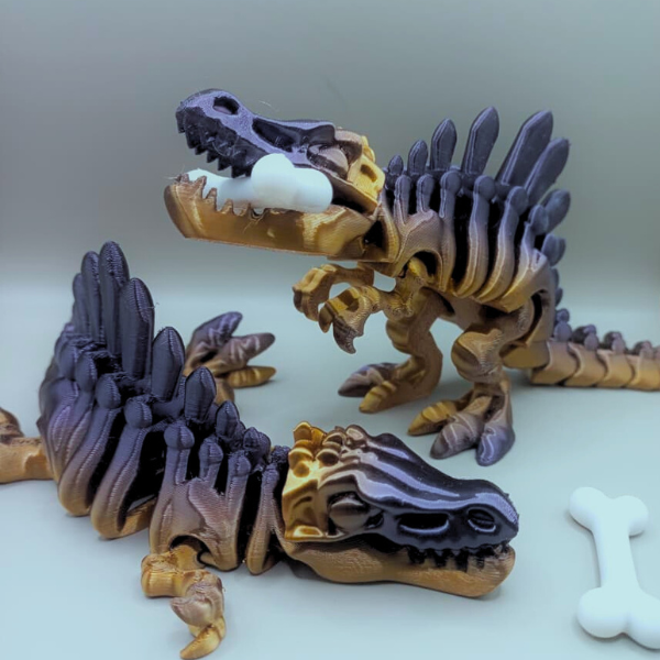 Unleash prehistoric spookiness with our Flexi Spinosaurus Skeleton! This highly detailed, 3D-printed articulated dinosaur features movable joints, allowing it to slither, crawl, or strike fun poses. With its eerie skeletal design and bonus bone accessory, it’s a must-have for collectors, Halloween decor, or anyone who loves flexi fidgets with a twist. Whether displayed as a centerpiece or played with for endless fun, this Spinosaurus skeleton brings ancient bones back to life!
