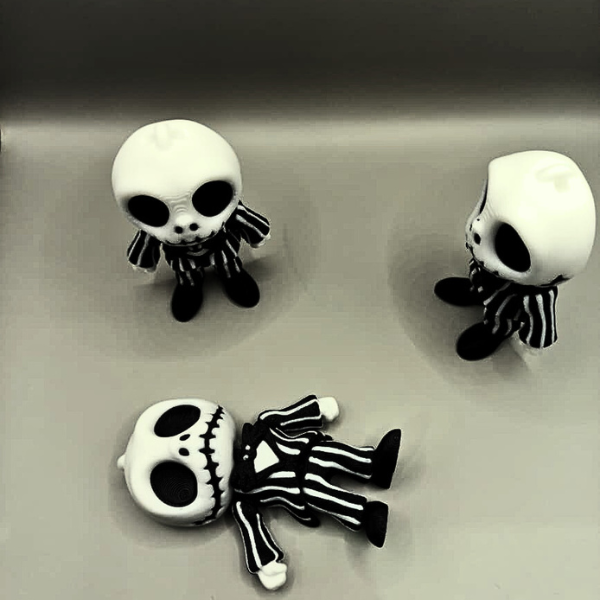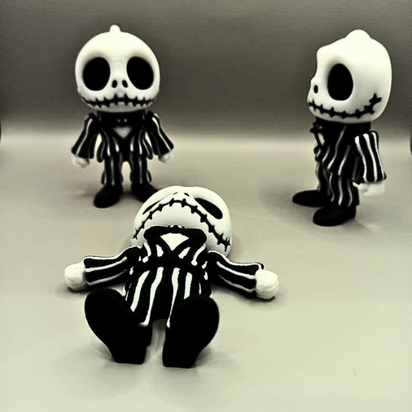 Bring the Pumpkin King to life with this articulated Jack Skellington figure, dressed in his classic striped suit. Perfect as a spooky desk companion, collectible, or even a keychain accessory. Made with durable 3D-printed material, this figure captures the iconic Halloween Town charm with a fun, poseable design.